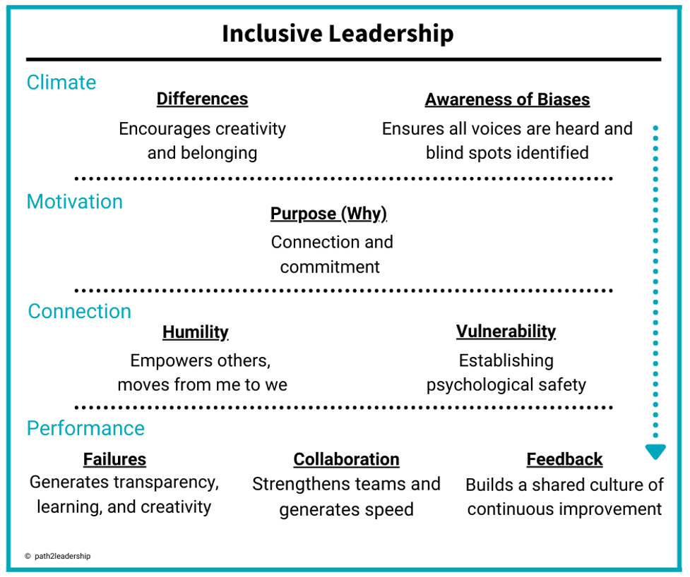 Bourke and Espedido found that the most critical element determining whether an individual feels included in the team is the leader’s behaviour. A recent McKinsey study of 15,000 professionals found that “when employees feel comfortable asking for help, sharing suggestions informally, or challenging the status quo without fear of negative social consequences, organisations are more likely to innovate quickly, unlock the benefits of diversity, and adapt well to change—all capabilities that have only grown in importance during the COVID-19 crisis.” Creating psychological safety is a key element of inclusive leadership.