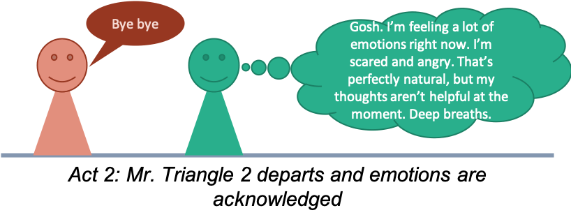 Do this by being mindful of them. Acknowledge them, perhaps even name them and note them as emotions you are having. Don’t judge yourself for having them, just acknowledge them. By the act of acknowledging them and noting them you start to distance yourself from them. Having done this, you can take a few deep breaths then move on to stage 2.